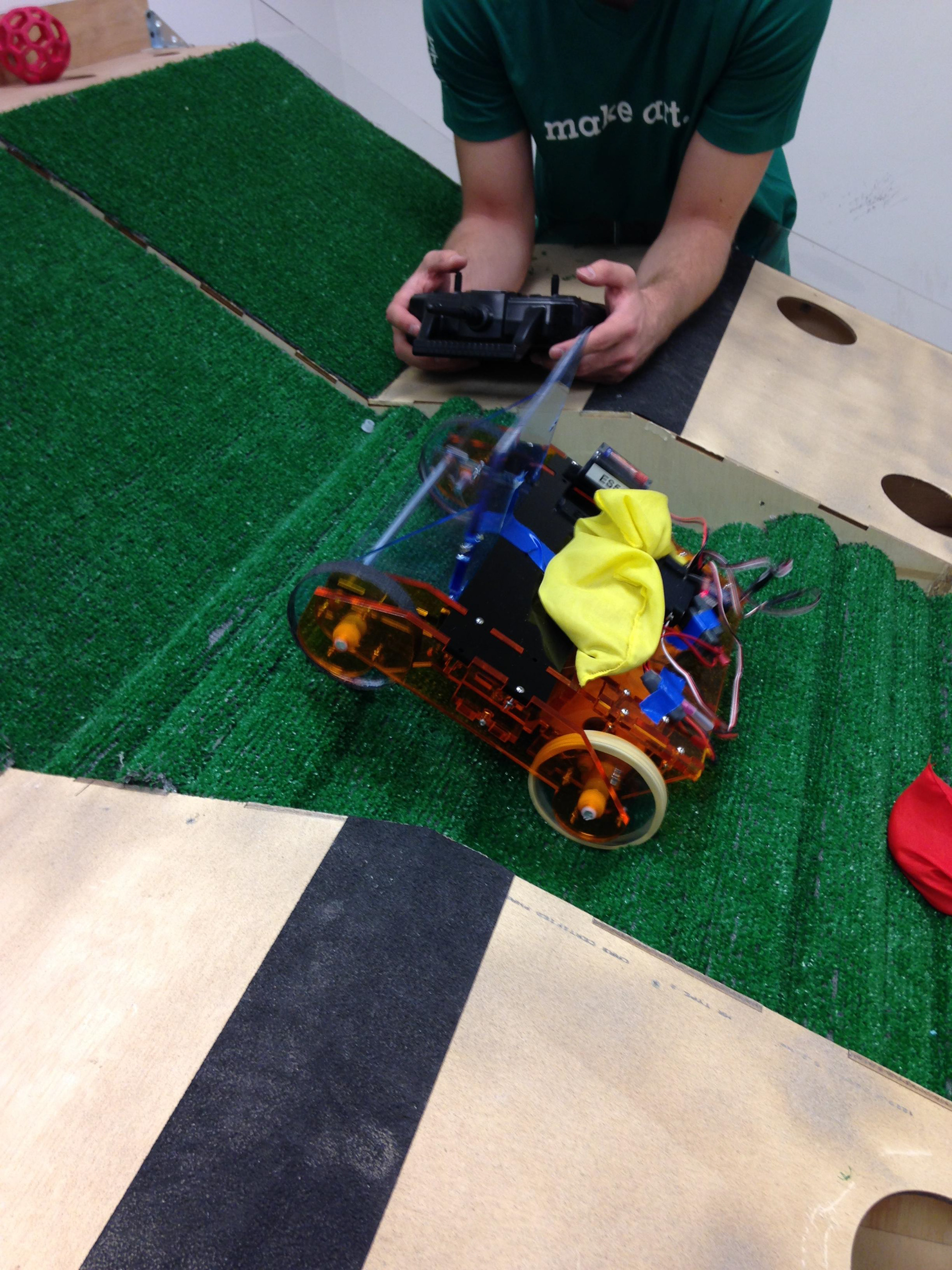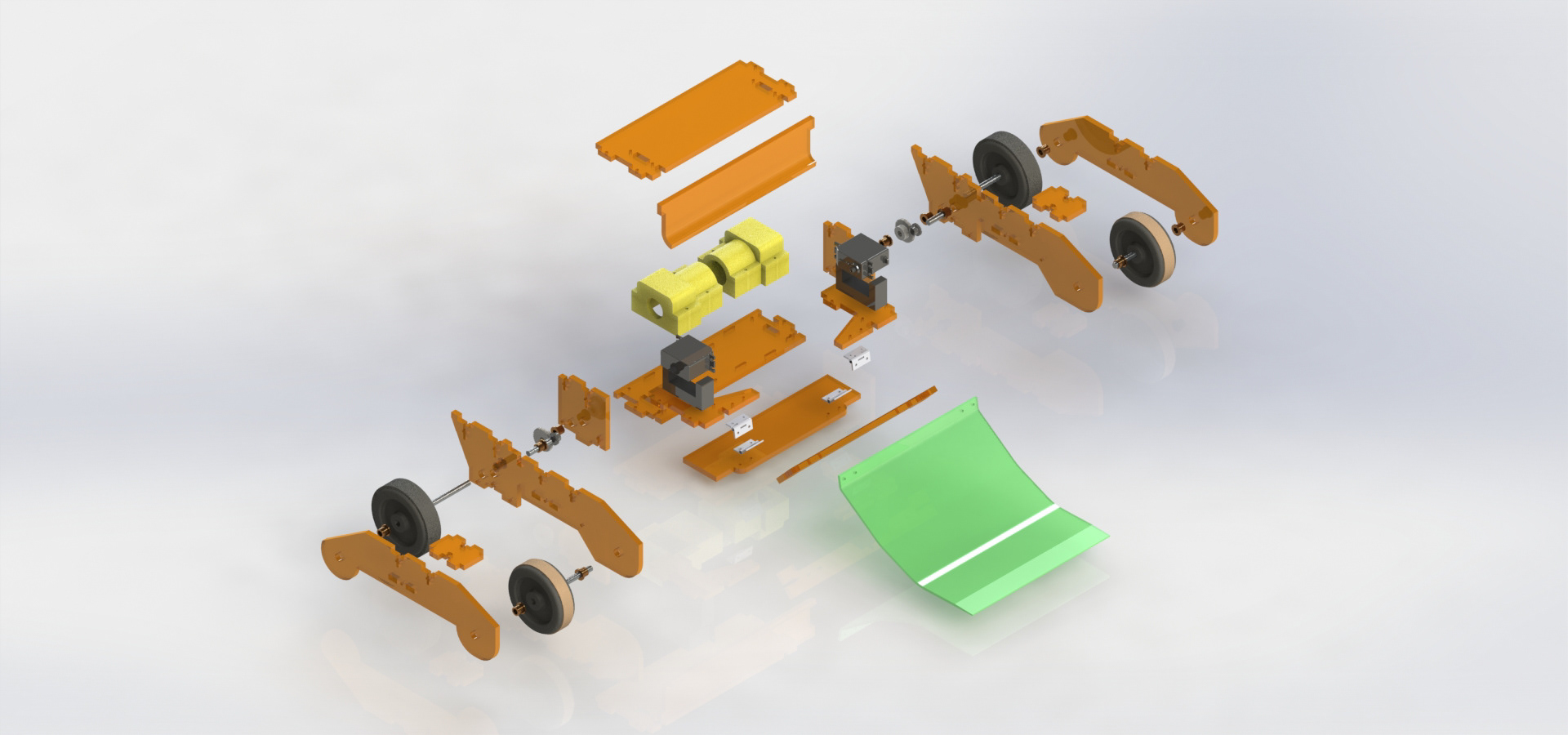 The images below highlight the key milestones in the creation of a remote controlled vehicle that would compete in a challenge called the Turf Wars. This vehicle was comprised of custom designed 3D printed parts and laser-cut chassis components assembled with various motorized components. The vehicle's main objective focused on scooping up bean-bags to unload into corn-holes found on the incline of the playing field. Renderings have been designed and outputted using SolidWorks.